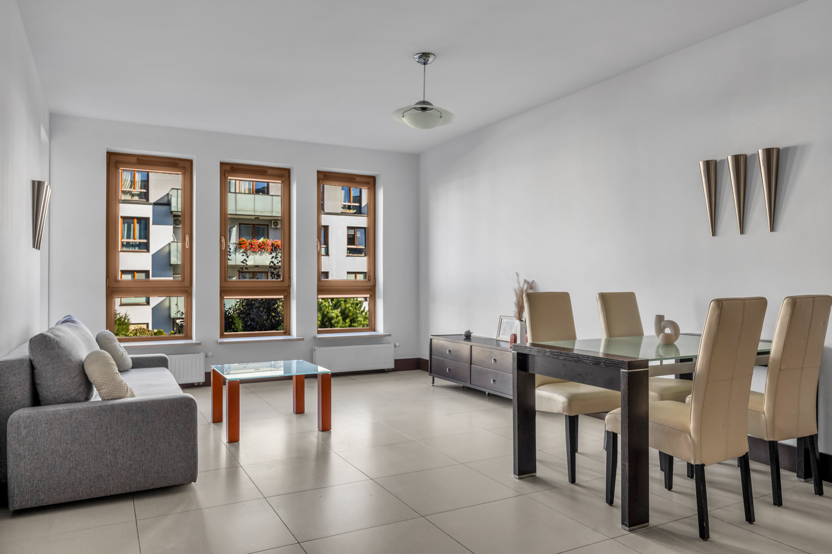 Przedstawiamy ofertę 2-pokojowego mieszkania na wynajem o powierzchni 63 m², zlokalizowanego w sercu Miasteczka Wilanów, tuż przy Świątyni Opatrzności Bożej, w nowoczesnym budynku dewelopera ROBYG (2013).