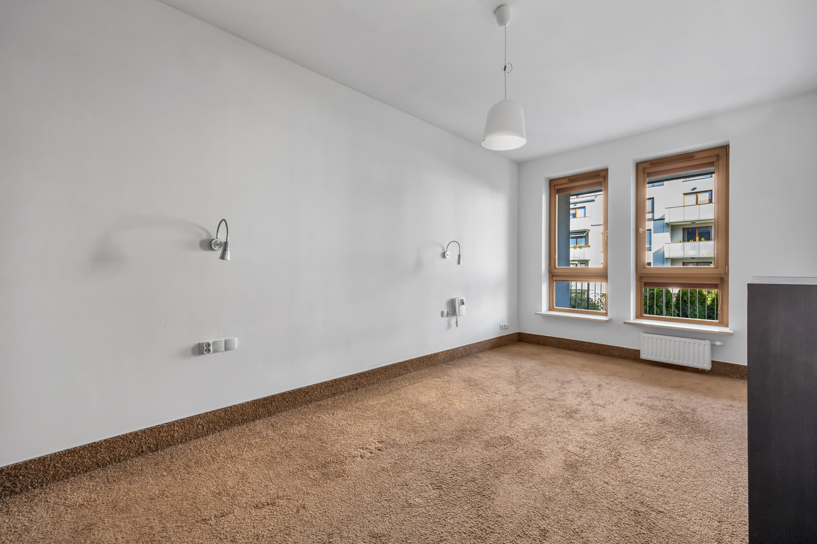 • Balkon: Przytulny balkon, z którego rozpościera się widok na zielone patio oraz kopułę Świątyni Opatrzności Bożej.Mieszkanie jest częściowo umeblowane (zabudowa stała: kuchnia, łazienka, garderoba, szafy). W kwestii konieczności dostawienia dodatkowych mebli — prosimy o kontakt i ustalenie szczegółów.