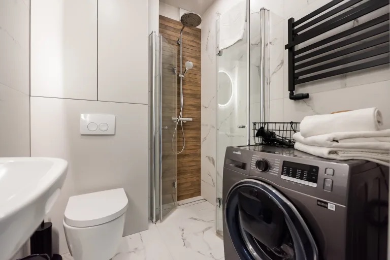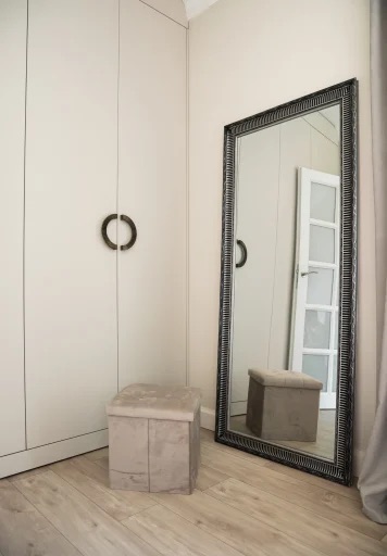 Na powierzchni 37,5 mkw znajduje się jasny salon z kuchnia - miejsce, które sprzyja odpoczynkowi, sypialnia z dużą szafa w zabudowie oraz dużym oknem na zieleń warszawskiego Mokotowa. Do salonu oraz sypialni prowadzi nas hall, wyposażony również w pojemną szafę. Łazienka z prysznicem oraz pralką oraz miejsce do przechowywania utrzymana jest w spójnej do całego mieszkania kolorystyce.